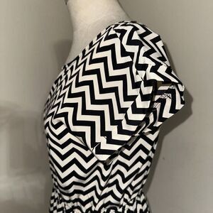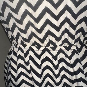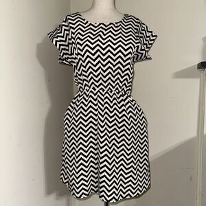 Pink Republic Chevron Print Design Black Ivory Mini Dress Pockets Sz Small EUC