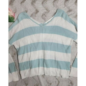 Pink Republic Cotton Blend Blue White Wide Stripe Back Button Knit Top XL