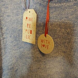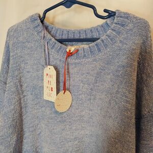 This girl's Pink Republic sweater in size L is made of 100% polyester knit fabric, featuring a heathered periwinkle color. The long sleeve pullover style has a cozy and comfortable feel, with a cropped length and side slits for added style. Perfect for a love-themed or cozy look, this buttery soft sweater is a cute and trendy addition to any girl's wardrobe.