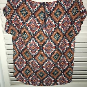 Get ready for those summer days with this stylish, like new, high-low top from Pink Republic. This top features a colorful Aztec pattern, cuffed sleeves, and a zipper on the back. Size: Medium. Reasonable offers accepted