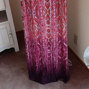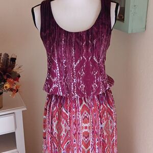 Ready for festivals, concerts on the Green, a stroll on the beach, or lounging at home. Cut in shoulders, top lined, pull over. Size L measures 40 at chest, 30-40 at waist, 50 at hips. 60 long from shoulder to hem. Beautiful and comfortable.