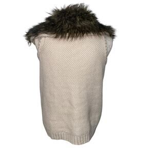 Pink Republic Ivory Cable Knit Faux Fur Collar Toggle Sweater Vest Size Medium