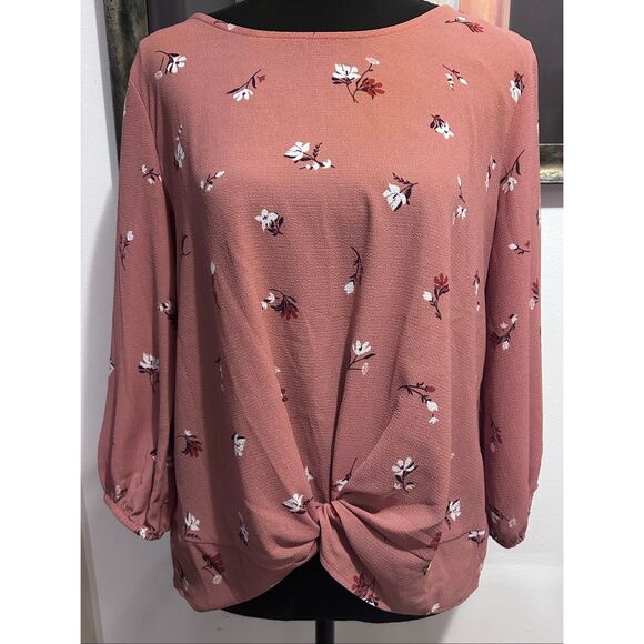 Pink Republic Knotted Hem Top Size S Round Neckline Floral Print 3/4 Sleeves