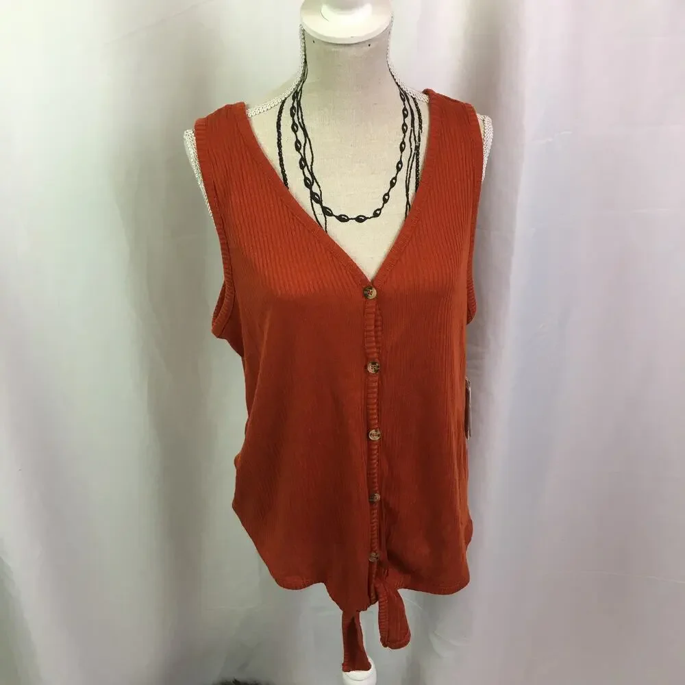 Pink Republic Ribbed Button Down Tank Rust Medium