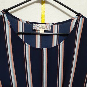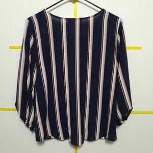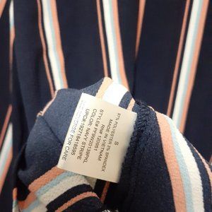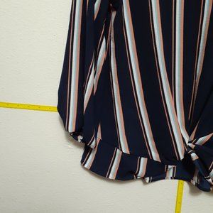 Pink Republic Ribbed Textured Tie Front Long Sleeve Top Size S Blue peach Stripe