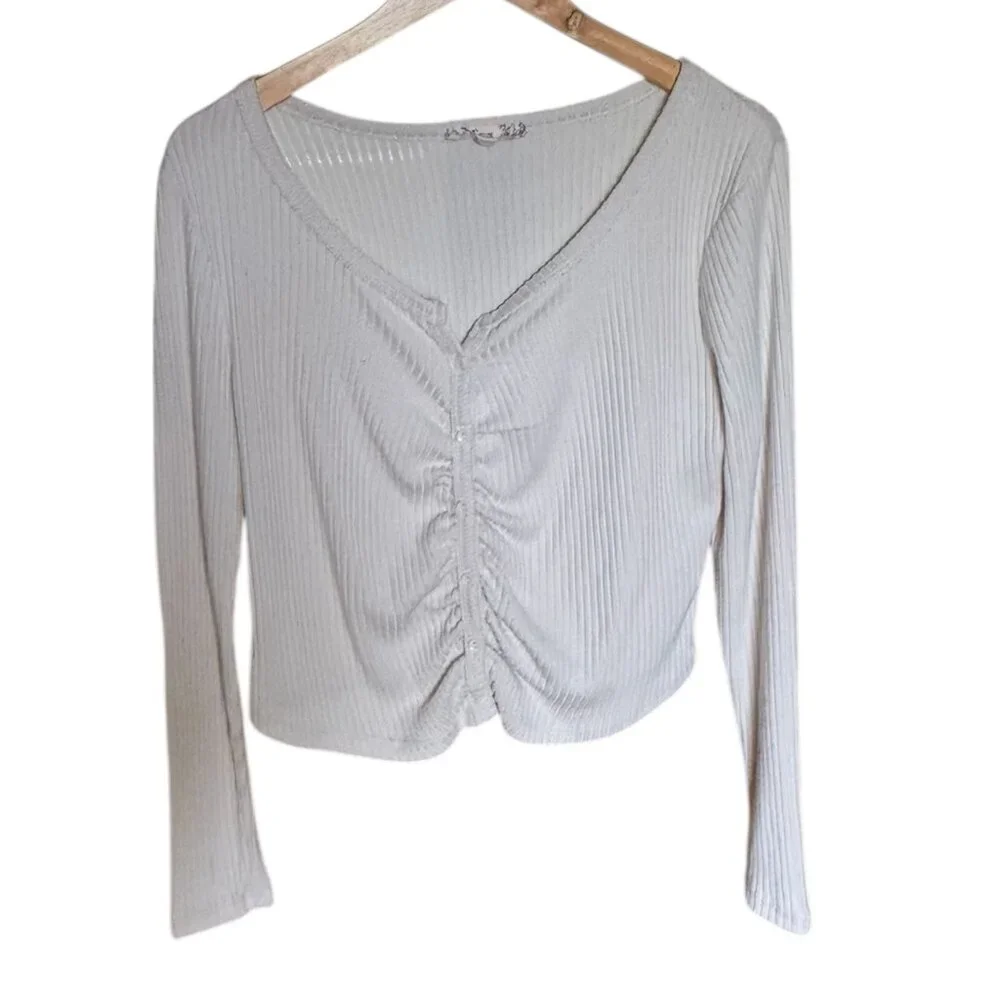 Pink Republic- Ruched & Ribbed Cream Button Top