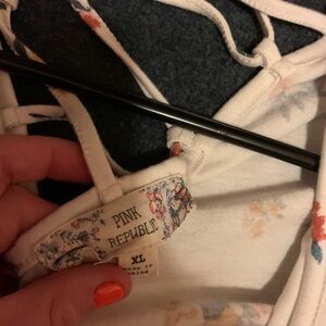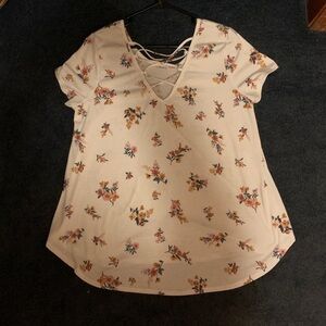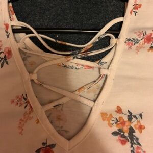 In good shape! Only worn a few times. Soft and comfortable material! Cute criss cross design on the back with a floral pattern! Great for casual wear, but can also be dressed up! Offers always welcome!