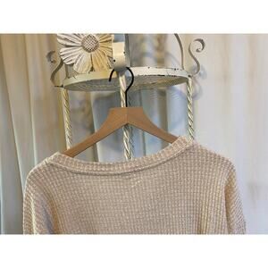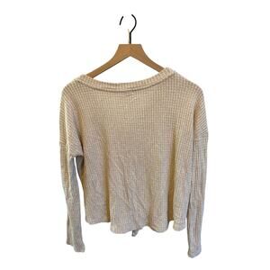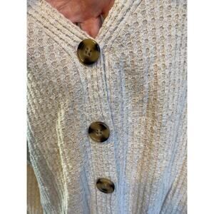 Pink Republic Top Botton Down Tie-Front Thermal V-Neck Cardigan Biege Size Med