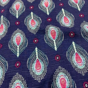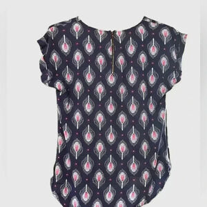 Women’s size small blouse with peacock feather print. This top is new with tag. It is made from 100% Rayon.