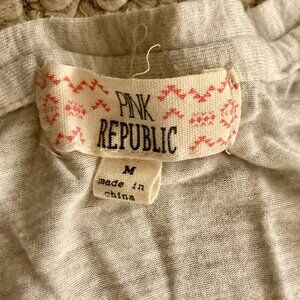 Pink Republic Womens Button-Up V-Neck T-Shirt Roll-Tab Sleeve Size M Gray
