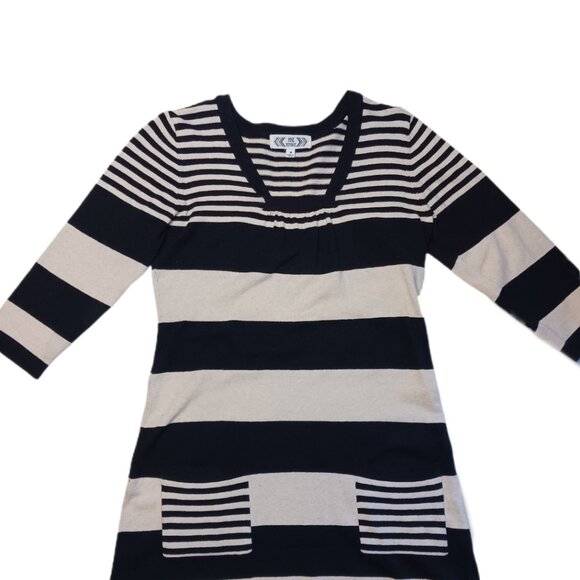 Pink Republic Womens Medium Dress Shirt Black & White 3/4 Sleeve Long Blouse