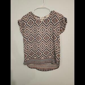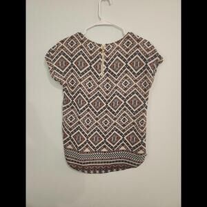 Pink Republic Women’s S Orange Blue White Geometric Zip Blouse Top New