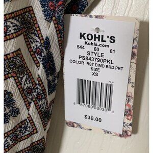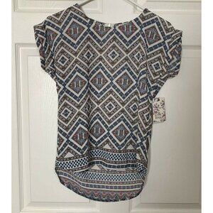 Pink Republic Women’s XS Orange Blue White Geometric Zip Blouse Top Light Weight