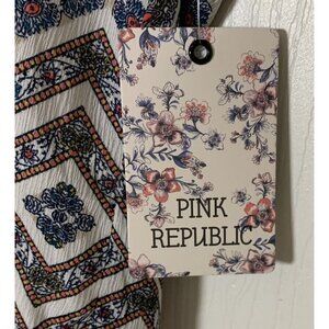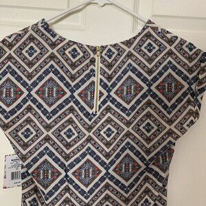 Pink Republic Women’s XS Orange Blue White Geometric Zip Blouse Top New
