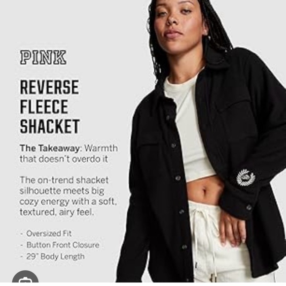 Stay warm and stylish with this pink reverse fleece shacket. Perfect for layering, it offers a cozy feel with an oversized fit and button front closure. Size xs/small