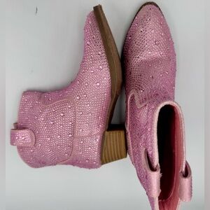 Step out in style with these dazzling pink rhinestone ankle boots. Perfect for adding a touch of glamour to any outfit.