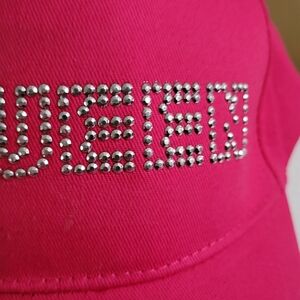 This vibrant pink baseball cap is adorned with sparkling rhinestones, creating a dazzling effect. Its classic design features a curved brim and an adjustable fit, making it a stylish and comfortable accessory for any occasion.