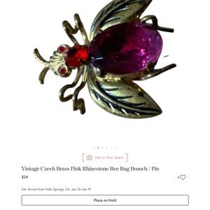 Elegant bee brooch with a vibrant pink rhinestone. Features gold-toned wings and intricate details.