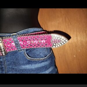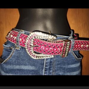 Add a touch of sparkle to your outfit with this stunning pink rhinestone belt. Perfect for elevating any look.