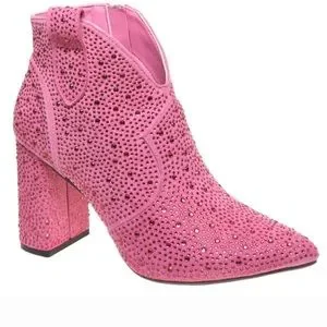 Rhinestone booties. Chunky high heel. Gorgeous V cut plunge front rhinestone design.Inside zipper closure. Make a statement with these stunning boots.
