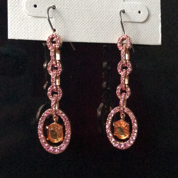 Cute pink rhinestone dangle earrings in chain link design by Gabrielle K!
