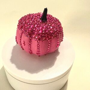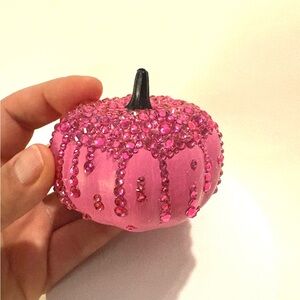 Sparkling pink pumpkin with rhinestone accents. Perfect for festive decor.