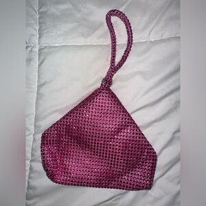 Elegant pink evening bag adorned with sparkling rhinestones. Perfect for special occasions.