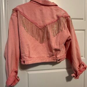 Pink Rhinestone Fringe Denim Jacket