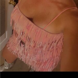 Add a playful touch to your wardrobe with this pink fringe set. Perfect for a night out or a fun concert!! No filter is needed, it sparkles just as bright as your soul does!