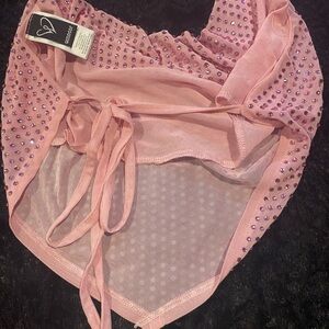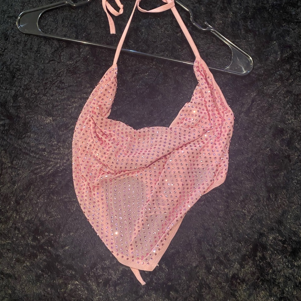 Sparkling pink halter top. Adorned with rhinestones. Perfect for a night out.