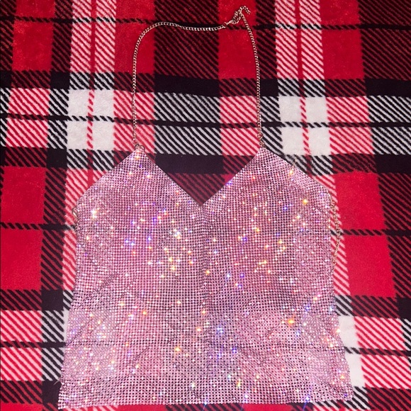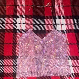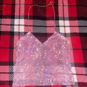 Sparkling pink halter top with rhinestone embellishments. Perfect for a night out. S/M fit