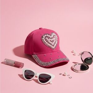 Add a touch of sparkle to your outfit with this pink rhinestone heart cap. Perfect for casual outings and adding a pop of color. Stunning Y2K Glam Heart Rhinestone Baseball Cap