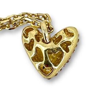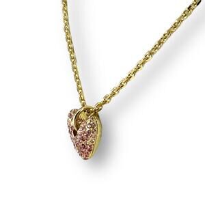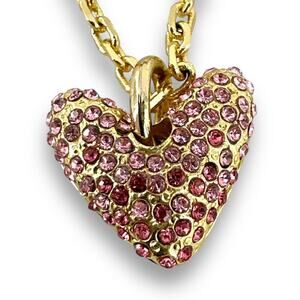Pink Rhinestone Heart Pendant Fashion Necklace Open Design 3D Gold Plated