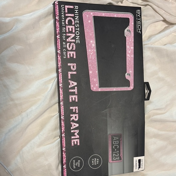 Add sparkle to your car with this pink rhinestone license plate frame. Universal fit for all cars.