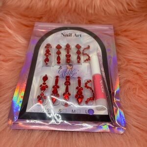 Elevate your style with this stunning pink rhinestone nail set. Perfect for adding a touch of glamour to any outfit.
