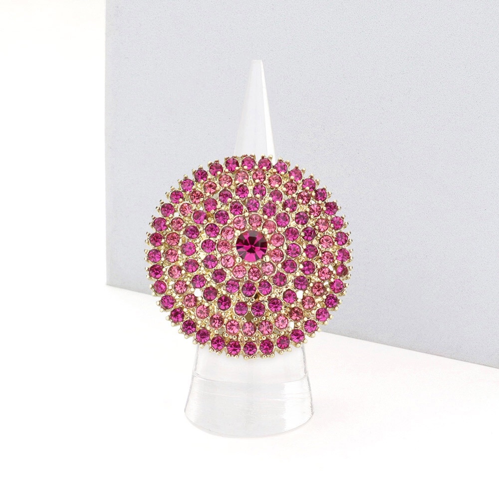 Pink Rhinestone Paved Circle Stretch Ring