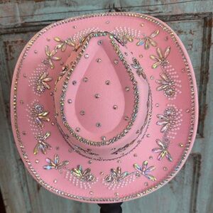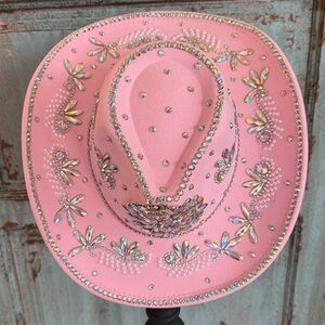 #PinkCowboyHat #WesternStyle #FestivalFashion #RhinestoneCowboy #PearlAccents #ConcertReady #RodeoStyle #GlamCowgirl #BacheloretteParty #WesternGlam #StatementHat