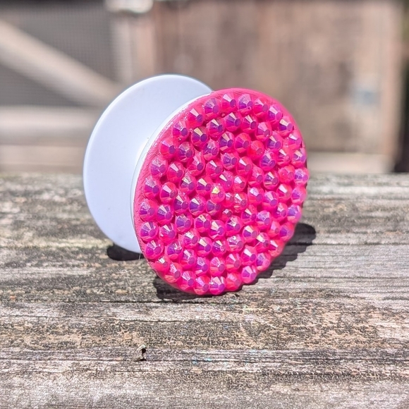 hand painted. Stylish phone grip with pink rhinestones. Adds sparkle to your device.