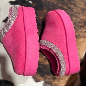 Step out in style with these vibrant pink shoes, featuring dazzling rhinestone embellishments. Perfect for adding a touch of glamour to any outfit.