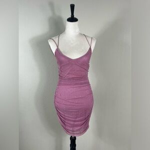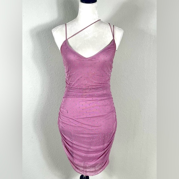 Pink Rhinestone Ruched Mini Dress