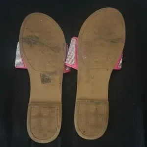 Step out in style with these chic pink slide sandals. Adorned with sparkling rhinestones, they add a touch of glamour to any outfit. Perfect for casual outings or a night out. Vguc
