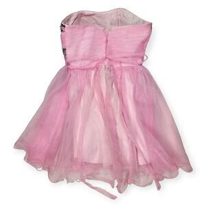 Pink Rhinestone Sparkle Lace Up Corset Strapless Mini Prom Dress Size 14