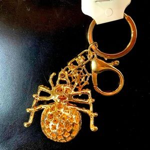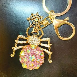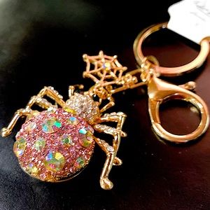 Dress up your keys or handbag with this pretty pink gem. Brand new with tags. Absolutely adorably creepy pink and iridescent crystal and rhinestone studded spider keychain or hanging purse charm.
