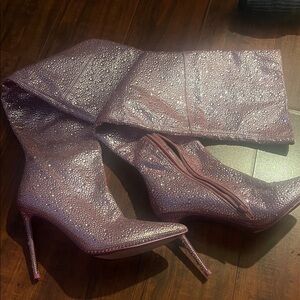 Step out in style with these dazzling pink rhinestone stiletto boots. Perfect for adding a touch of glamour to any outfit.