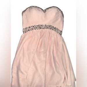 Pink Rhinestone Strapless Mini Dress