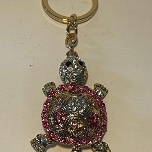 Pink Rhinestone Turtle Key Ring NEW