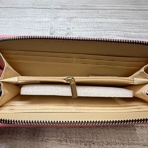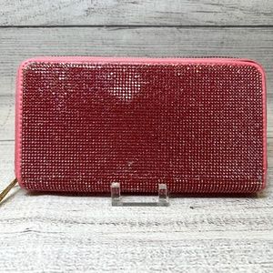 NWT Pink Sparkling Rhinestone and Vegan Leather Wallet Rhinestones all around outside of wallet Zipper closure Inside- 6 card pockets Zipper coin pocket 6 long pockets Approx 7.5"x0.98"x3.9"
