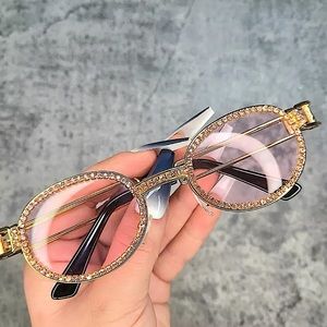 Pink lenses with rhinestones around the glasses!