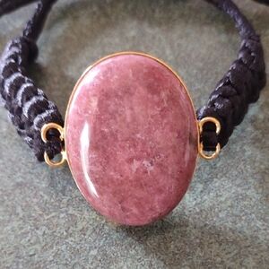 Elegant bracelet featuring a pink Rhodonite stone centerpiece. Adjustable design for a perfect fit. Ideal for adding a touch of color to any outfit.