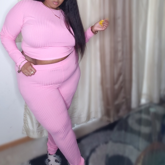 Elevate your style with this chic pink ribbed set. Perfect for any casual outing.